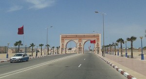 monde s’est mis à refaire ses peintures et à accrocher des drapeaux marocains aux murs. Au camp, la possible venue de la reine à la plage a eu pour conséquence deux jours de tractopelle pour déplacer le sable au bon endroit… Une grande concentration de militaires et de gendarmes est arrivée dans le centre-ville : les bâtiments officiels et les routes étaient surveillés de près. Le jour du passage du roi, il y a avait un policier tous les 50 m, chacun sous un drapeau marocain. Nous nous sommes retrouvés par hasard au milieu de la foule venue voir Mohamed VI, une expérience particulière…